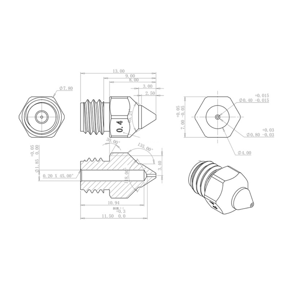 0.2mm Latão Nozzle TTS (Creality CR-6 CR6) MK8 – AIMSOAR