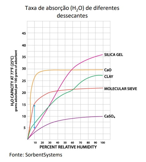 30 – 35% – Absorção do seu peso em dessecante de humidade do ar