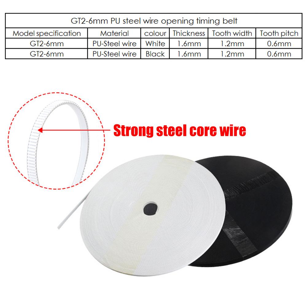 1m Correia Branca GT2 6mm largura Reforçada com Aço ( GT2 timing belt PU steel wire ) – AIMSOAR