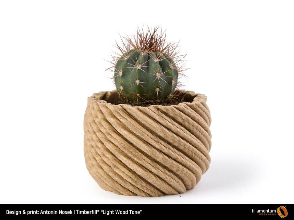 A peça impressa em 3D apresenta um acabamento de madeira esteticamente agradável e, quando extrudados, os filamentos Timberfil emitem um agradável aroma de abeto que permanece na peça por algum tempo. Este filamento tem uma tendência muito baixa de empenamento e laminação, facilitando a impressão como o PLA normal, mesmo em altas velocidades. A resistência ao calor das peças impressas em 3D com filamento Timberfill pode ser aumentada de 55°C a 80°C submetendo a peça a um processo de recozimento.