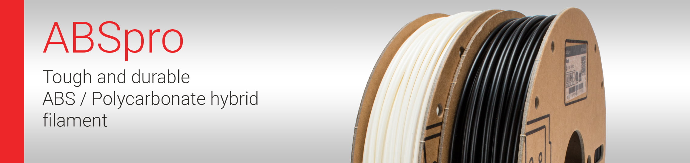 ABSpro is a professional high-strength ABS (Acrylonitrile Butadiene Styrene) based 3D printer filament – which has been reinforced with a mixture of Styrene Maleic Anhydride (SMA) and PolyCarbonate (PC) – resulting in an incredibly strong and even more impact resistant filament. ABSpro is extremely strong, has an high gloss and is extremely suitable for printing mechanical parts with high precision and fine detail and has exceptional endurance properties.