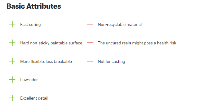Esta resina não é biocompatível nem aprovada para utilização com alimentos, bebidas ou para aplicações médicas no corpo humano. Leia sempre a ficha de dados de segurança.