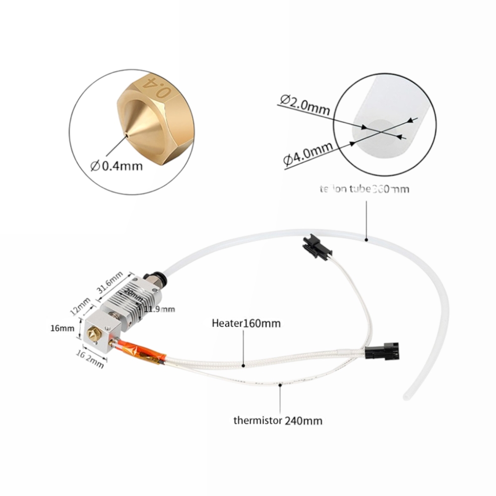 • Componentes principais: Resistência de aquecimento, termístor e tubo de Teflon