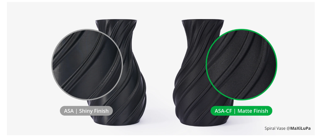 A superfície lisa e fosca, com linhas de camada minimamente visíveis, confere ao Bambu ASA-CF uma aparência refinada e natural, perfeita para modelos detalhados, como vasos e outras decorações exteriores.