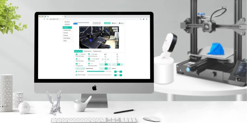 Vigiar e controlar a impressora 3d através de um browser de PC em LAN e carregar facilmente o ficheiro gcode para impressão.