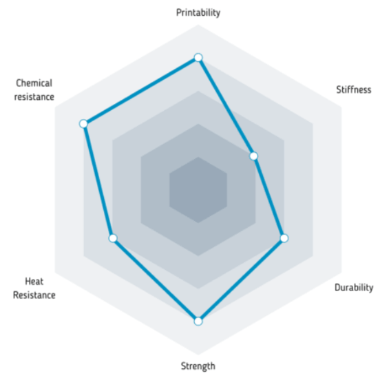 Trata-se de um material muito forte e versátil com uma popularidade crescente na forma de filamentos para impressão FDM 3D.