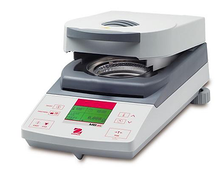 No laboratório, foi utilizado o Analisador de Humidade OHAUS MB45 para detectar o conteúdo de moléculas de água do material sob diferentes tempos de secagem