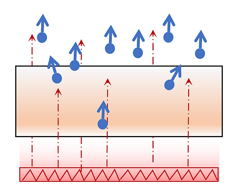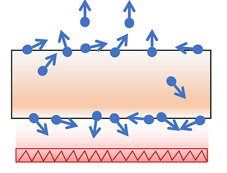 Fig.2 Após o aquecimento, a ligação entre moléculas de água e cadeias de polímeros é quebrada, as moléculas de água internas deslocam-se para a superfície dos filamentos;