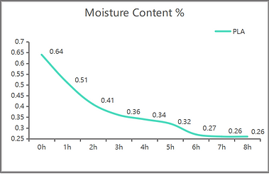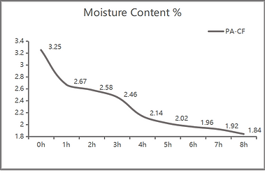 Fig.4 Após a secagem, o conteúdo da molécula de água do filamento de impressão 3D é significativamente reduzido, e pronto para a melhor experiência de impressão.