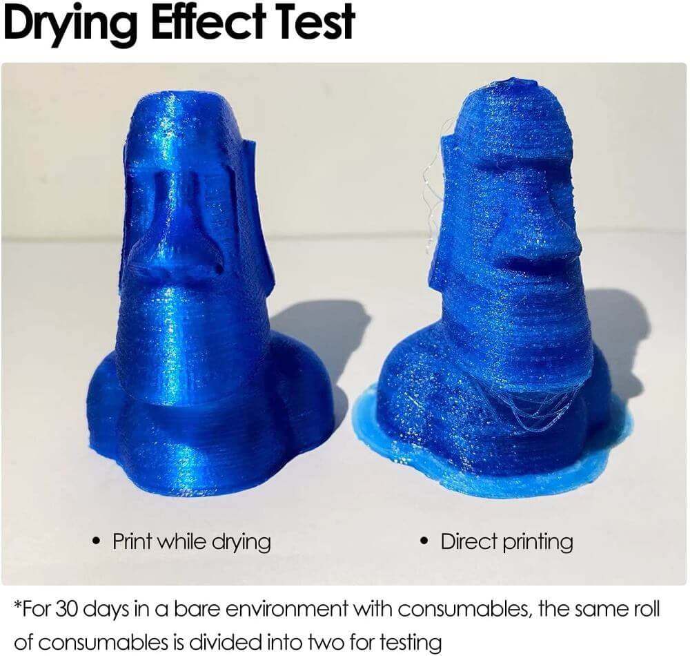 - Qualquer material de filamentos irá absorver a humidade do ar. O mais recente Eibos 3D Filament Dryer CYCLOPES é mais eficiente para resolver bolhas, entupimento, má aderência, má qualidade de impressão e mudança de camada de filamento de impressão 3d causado pela humidade ambiente.