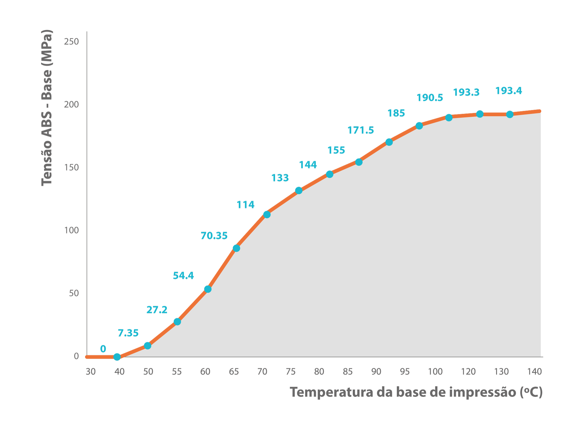 Zona 4: 95ºC<Tª<120ºC. Zona de aderência máxima. Qualquer tipo de geometria e dimensões podem ser impressos. Nesta gama, a tensão de adesão da base da impressora 3D com a peça é máxima, suportando qualquer factor de concentração de tensão.