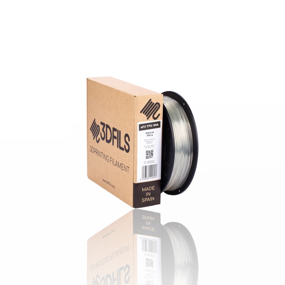 O eFil TPU 90A pertence à família eFil de filamentos flexíveis baseados em plástico TPU. A sua dureza é Shore 90A, que combina um elevado grau de flexibilidade com facilidade de impressão. Além disso, diferentes graus de dureza podem ser obtidos variando a percentagem de enchimento durante a impressão 3D. A dureza 90A pode atingir 470% de alongamento e é o que podemos encontrar, por exemplo, na sola de borracha de uma bota de trabalho. A sua resistência à tracção atinge 35 MPa e a resistência ao impacto é de 126 N/mm.
