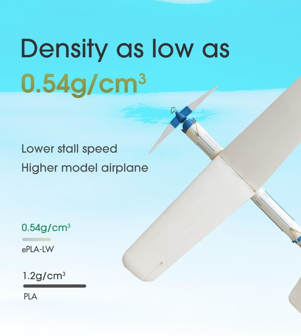 Sob o mesmo modelo e à mesma velocidade, o uso de PLA leve permite que o modelo de aeronave tenha uma carga de asa mais leve e uma velocidade de espera mais baixa. Para modelos como os aviões, sob a condição de força equilibrada, a redução do peso, tanto quanto possível, pode melhorar muito o desempenho do avião.