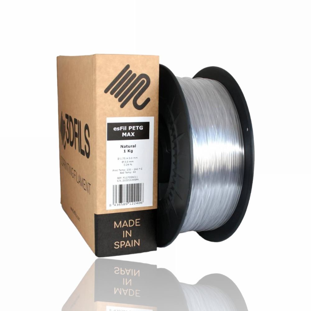 esFil PETG MAX é um filamento à base de PETG fabricado em Espanha. O PETG é o material perfeito para o fabrico de peças funcionais por impressão 3D. PETG é um filamento que tem pouca deformação, pelo que é possível imprimir grandes elementos com ele.