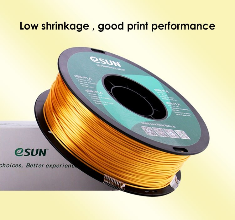 O PLA eSilk é feito de material composto de polímero, imprimindo de igual forma como o PLA.