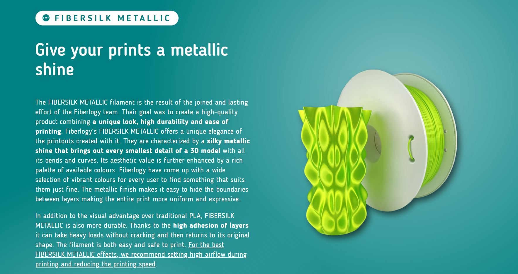 O FIBERSILK METALLIC PLA da marca Fiberlogy é um material básico para impressão 3D sendo um filamento bastante durável e resistente.