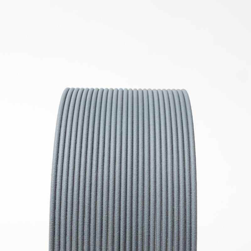 Gray Matte Fiber HTPLA feels industrial, but uses plant fibers for texture and sheen.