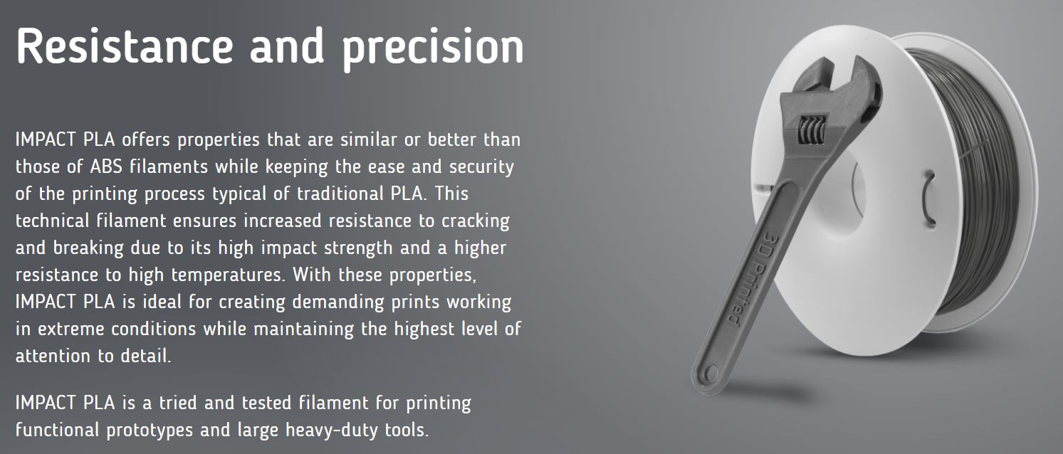 IMPACT PLA é um filamento comprovado e testado para a impressão de protótipos funcionais e de ferramentas de grande resistência ao trabalho intensivo.