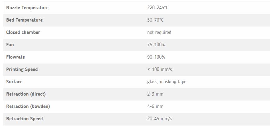 0º a 70º – Temp. recomendada da Heated bed (0ºC mediante aplicação de 3DLAC)