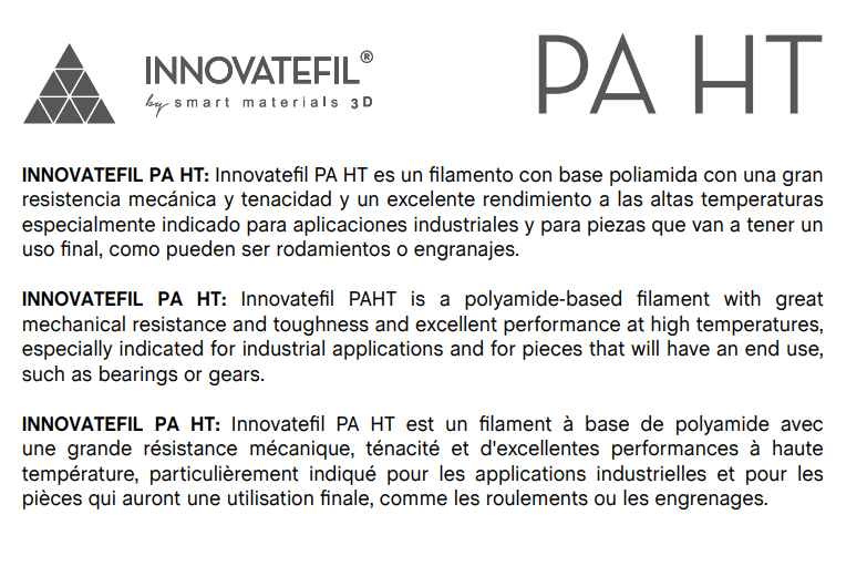 INNOVATEFIL PA HT M 750g ( Nylon Altas Temperaturas ) Natural – Smart Materials 3D
