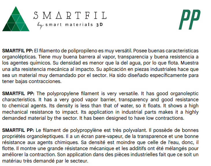 Filamento Smartfil  PP GF  da marca Smart Materials 3D, de excelente qualidade, para a Impressão 3D.