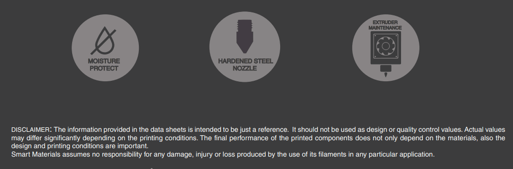 A fibra de carbono torna o filamento muito abrasivo, por isso é necessário utilizar nozzles de aço endurecido ou similares, evitando assim o desgaste prematuro dos componentes.