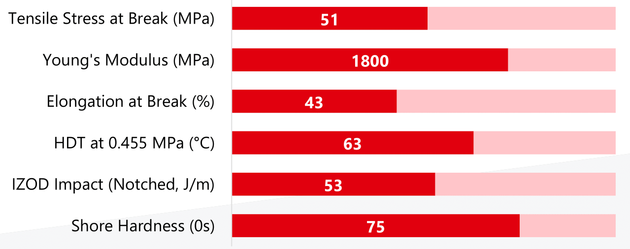 Este material é um plástico de engenharia de alta resistência com grande resistência ao impacto e um excelente acabamento superficial. É ideal para uma grande variedade de ferramentas na produção – auxiliares de fabrico, gabaritos e acessórios, caixas e tampas. Apresenta uma elevada resistência verde e HDT, o que lhe permite imprimir com precisão e funcionar à temperatura ambiente.