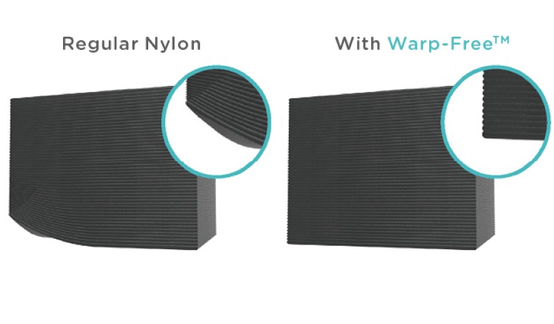 A tecnologia Warp-Free™ permite a produção de filamentos à base de Nylon que podem ser impressos em 3D com uma excelente estabilidade dimensional e com uma deformação quase nula. Isto é conseguido através do controlo fino da microestrutura e do comportamento de cristalização do Nylon, o que permite ao material libertar totalmente o stress interno antes da solidificação.