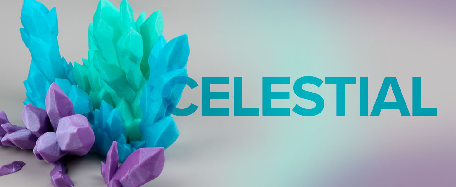 Panchroma™ Celestial é uma cor pastel deslumbrante com pó de brilho que cintila através da translucidez do material.