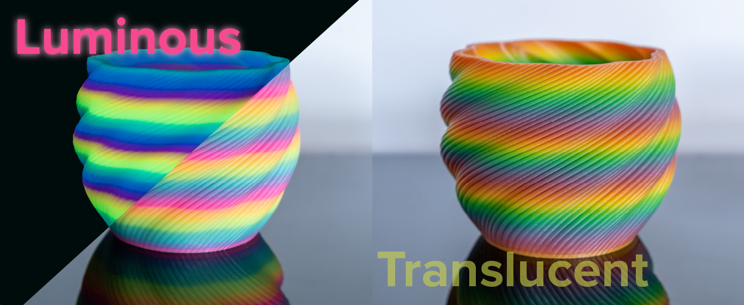 Qual a diferença entre o Panchroma™ Glow PLA e o Panchroma™ Luminous PLA?