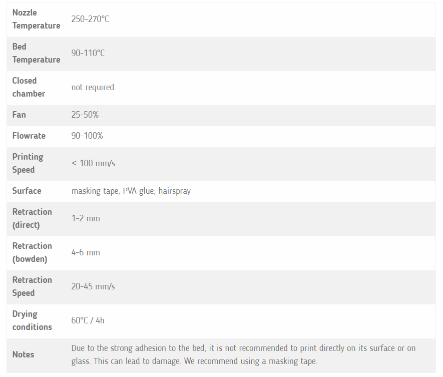 Este filamento na versão Pure TR pode ser utilizado para a produção de produtos aprovados para o contacto com os alimentos.