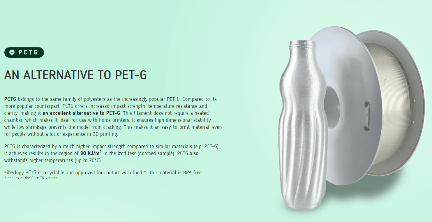 PCTG é um excelente material para os produtores que procuram um filamento resistente, fácil de imprimir e acessível.