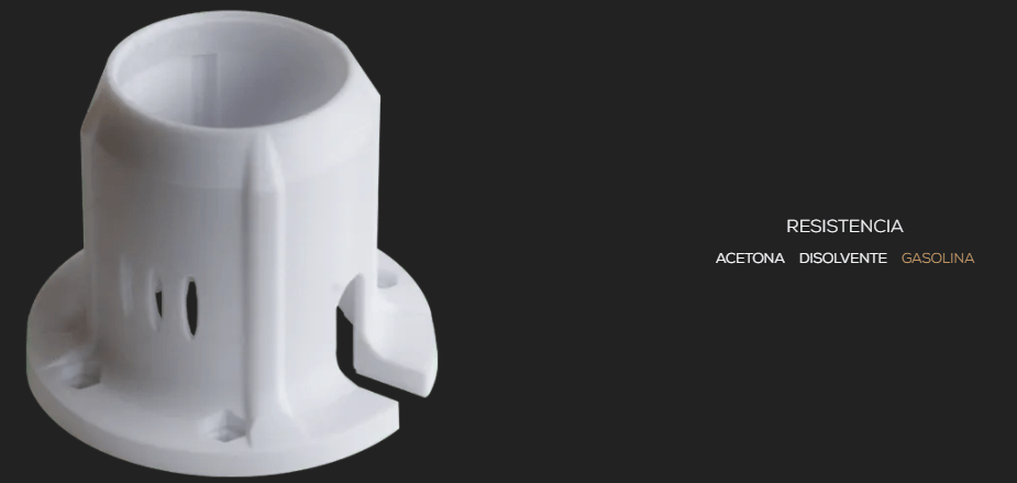 As suas propriedades de adesão entre camadas, a sua emissão sem odores e a sua elevada resistência aos agentes químicos (solventes, acetona,…), fazem dele o material ideal para a impressão de peças técnicas e industriais.