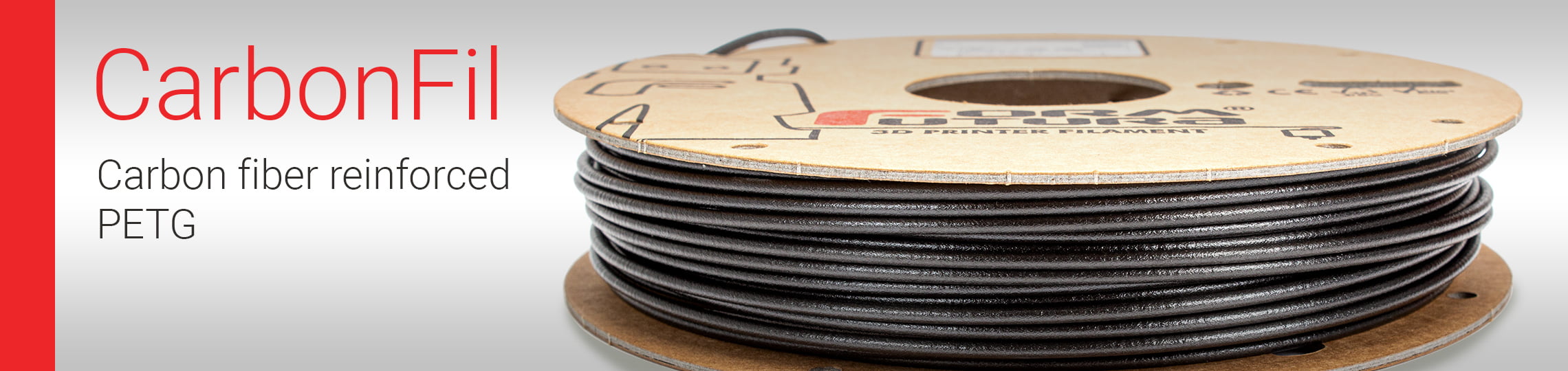 Please be aware that CarbonFil filaments contain a relatively high concentration of extremely hard carbon fibres, which have an abrasive nature. In general these carbon fibres will accelerate the nozzle-wear of brass nozzles, much faster than unfilled filaments. We recommend to use nozzles from stainless steel or other hardened alloys.