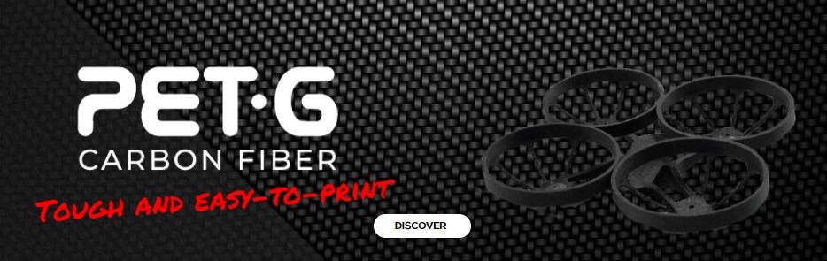 Filamento PET-G CF reforçado com fibra de carbono. Este material tem excelentes propriedades mecânicas para garantir peças de alta resistência ao impacto sem renunciar à facilidade de impressão de PET-G.