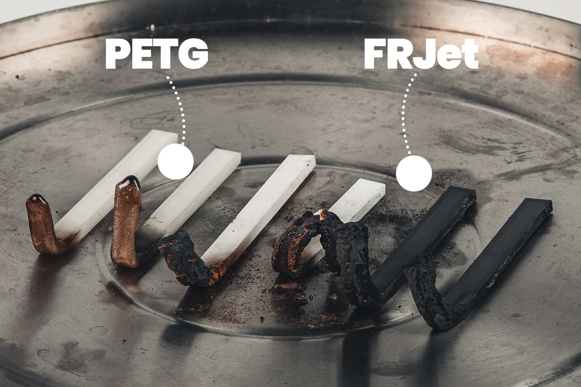 O FRJet é um material inovador na área da impressão 3D, tornando-se uma escolha preferencial na indústria eletrónica. Desenvolvido a partir de PETG e contendo uma mistura especial de aditivos com retardante de chama, certificado com a norma de segurança UL94 V0, este material é ideal para componentes eletrónicos e aplicações que exigem uma elevada resistência ao fogo.