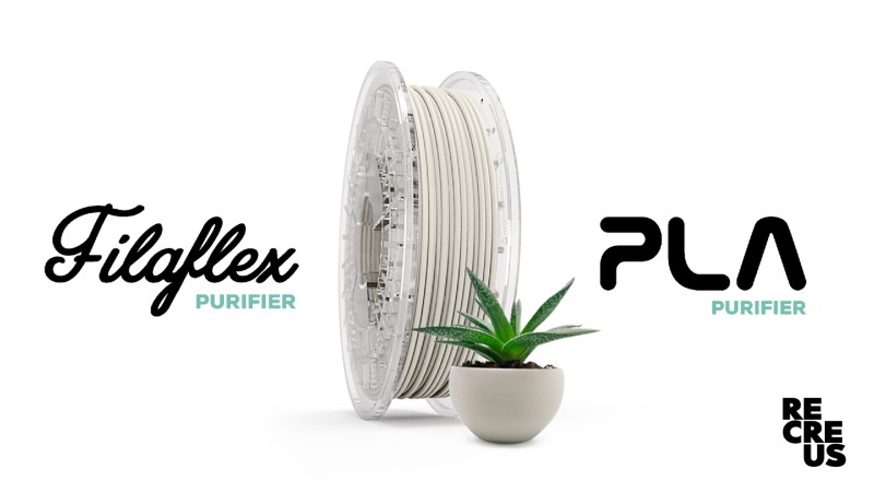 PURIFIER é a nova gama de filamentos da Recreus com dois novos produtos: Filaflex Purifier e PLA Purifier.