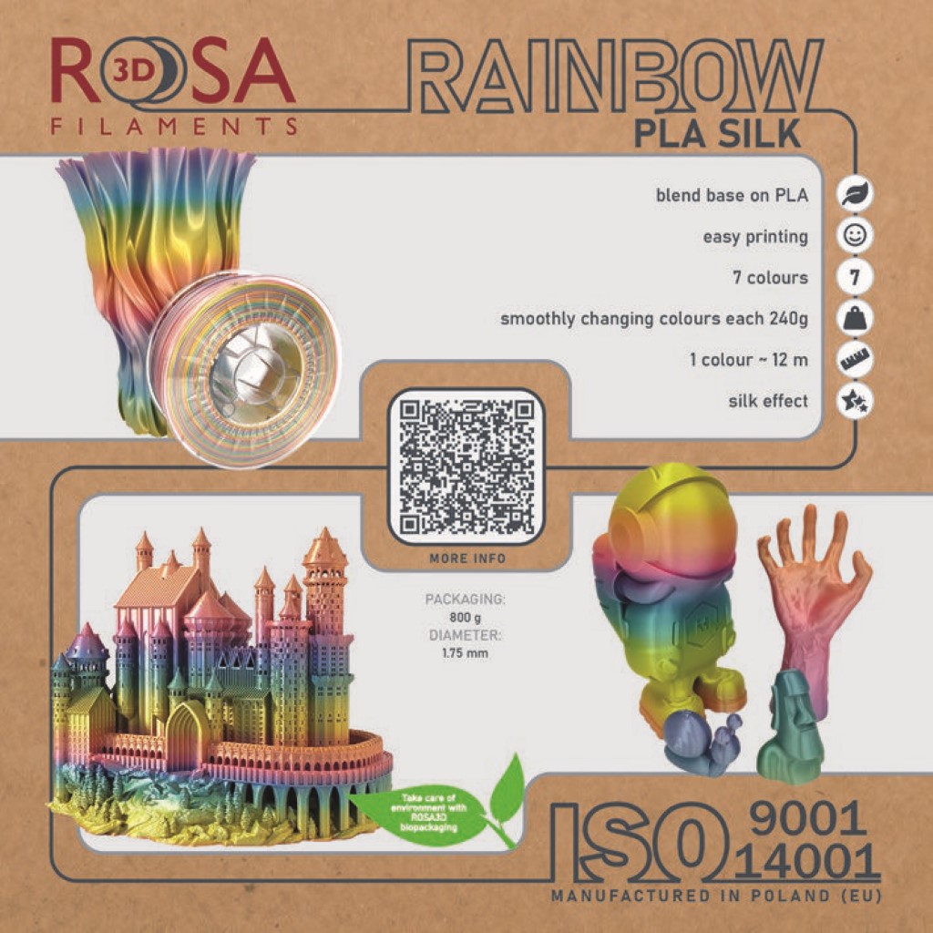 Apresentamos um filamento novo e exclusivo à nossa gama de produtos em constante expansão – PLA Rainbow Silk da marca ROSA3D .