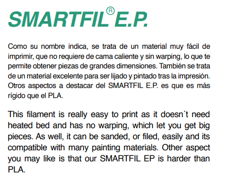 Filamento Smartfil PLA EP  da marca Smart Materials 3D, de excelente qualidade, para a Impressão 3D. Indicado tanto para utilizadores mais avançados e profissionais como para quem está a começar.