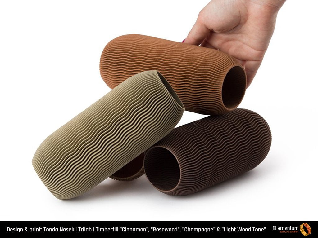 Com o filamento PLA Timberfill (1,75mm ou 2,85mm) é feito com mistura de material à base de madeira. A resistência é a mesma de materiais de PLA, no entanto o acabamento e toque é semelhante a madeira.