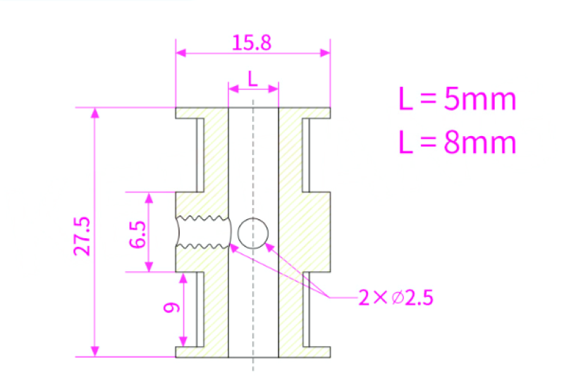 Polia Dupla para Correia GT2 20 Dentes 15.8mm 8mm Furo Alumínio ( GT2 Double-head timing belt pulley) – AIMSOAR