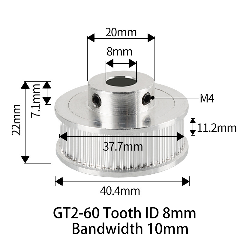 Polia para Correia 10mm GT2 60 Dentes 22mm 8mm Furo Alumínio ( GT2 timing belt pulley) – AIMSOAR