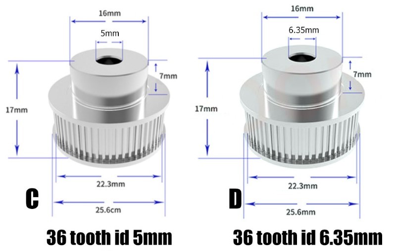 Polia para Correia 6mm GT2 36 Dentes 17mm 6.35mm Furo Alumínio ( GT2 timing belt pulley) – AIMSOAR