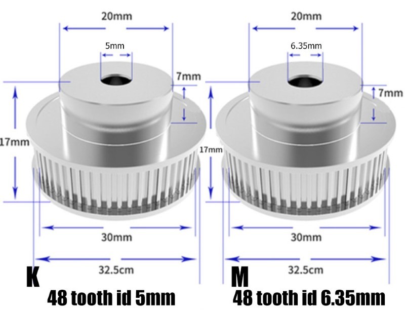 Polia para Correia 6mm GT2 48 Dentes 17mm 6.35mm Furo Alumínio ( GT2 timing belt pulley) – AIMSOAR