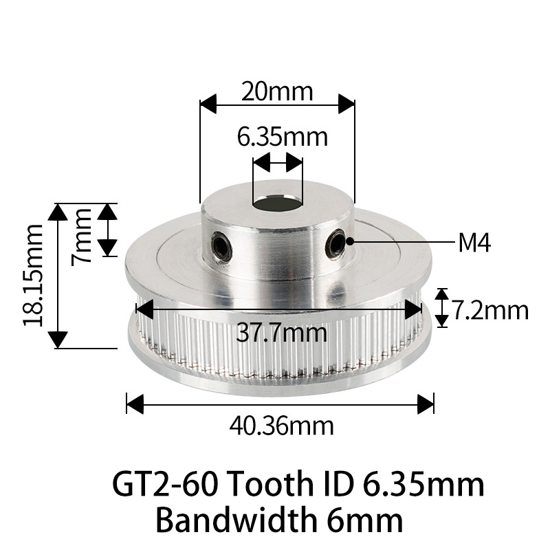 Polia para Correia 6mm GT2 60 Dentes 18mm 6.35mm Furo Alumínio ( GT2 timing belt pulley) – AIMSOAR