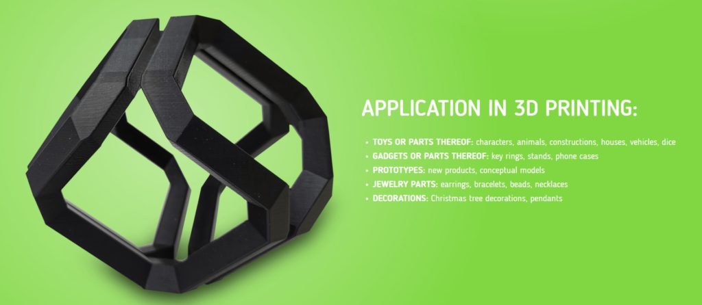 As suas propriedades permitem a impressão de elementos precisos e de formas complexas, sendo que o R PLA pode ser utilizado para criar protótipos funcionais, gadgets, brinquedos e objectos decorativos.