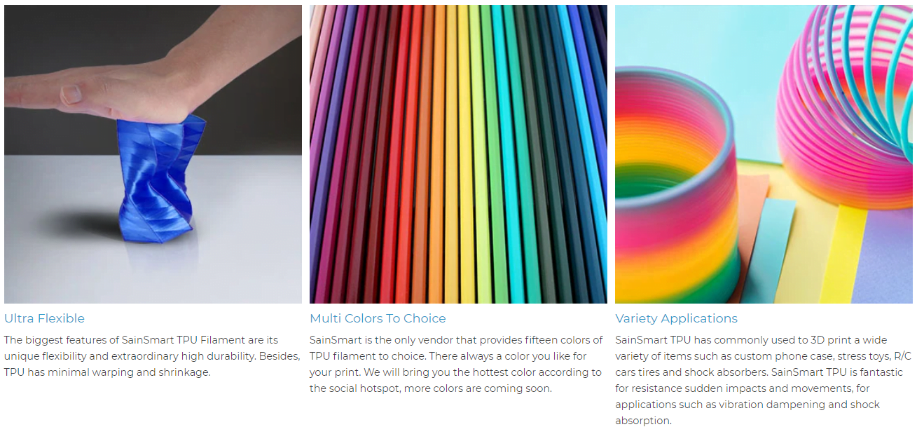 O TPU da SainSmart ganha popularidade entre a comunidade de impressão 3D pelo seu equilíbrio de rigidez e flexibilidade.