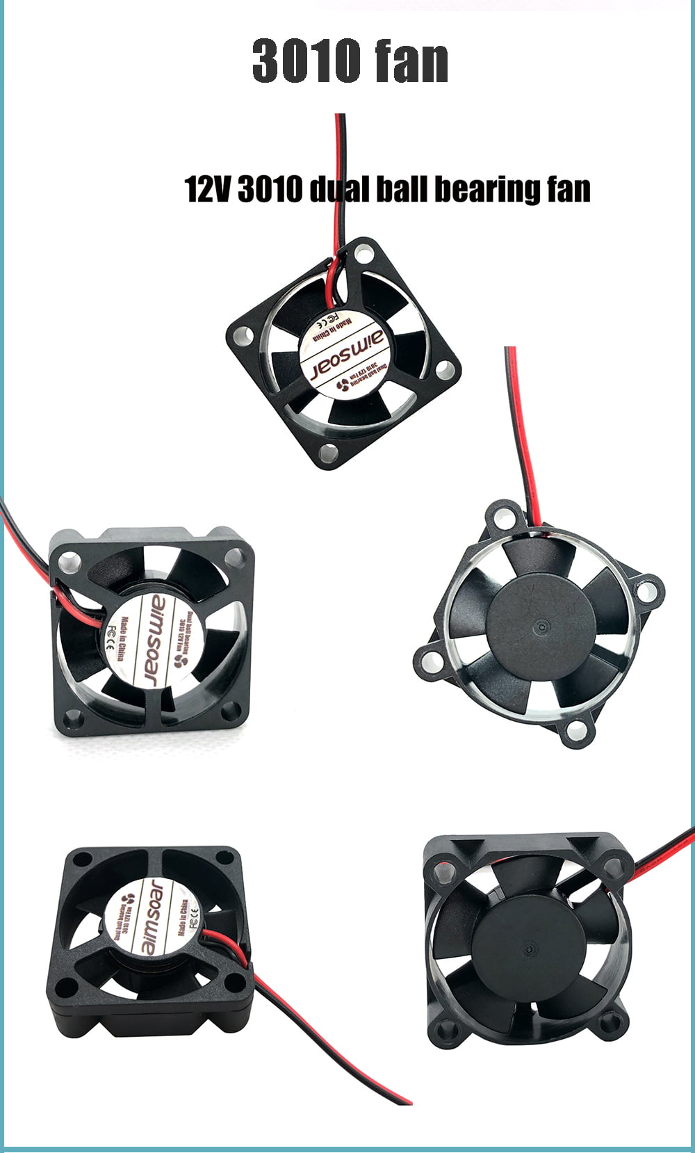 Características: Wiring length 30CM, Noise 22 DBA, Speed 7880±5% RPM, air volume 3.5 CFM, DC 12V, Current 0.1 A, Power 1.2 W, 2 pin, 30*30*10mm, Bearing structure: Double ball bearing, Wiring: Red positive, black negative, Temp: -10+80℃, Storage: 5 T0 95% RH, Life More than 30000 Hours