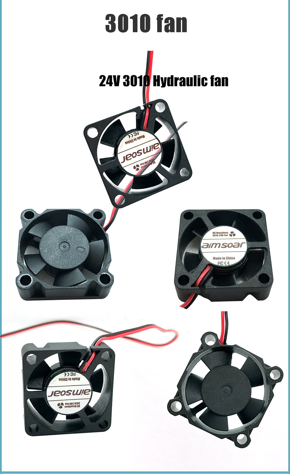 Características: Wiring length 30CM, Noise 27.7 DBA, Speed 9455±5% RPM, air volume 4.2 CFM, DC 24V, Current 0.04 A, Power 0.96 W, 2 pin, 30*30*10mm, Bearing structure: Hydraulic seal bearings, Wiring: Red positive, black negative, Temp: -10+75℃, Storage: 5 T0 95% RH, Life More than 30000 Hours